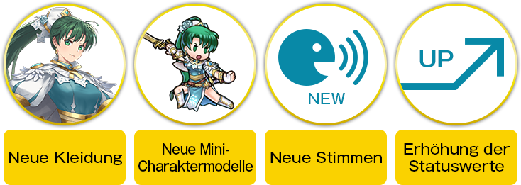 Wenn du eine Prächtige Kleidung erhältst, kannst du den dazu passenden Helden in einen Prächtigen Helden verwandeln. Die Designs der Prächtigen Kleidung sind inspiriert von Askr, Nifl und anderen Aspekten der Welt von Fire Emblem Heroes. Zusätzlich erhalten Helden mit einer Prächtigen Kleidung einen Bonus von +2 auf alle Statuswerte.
