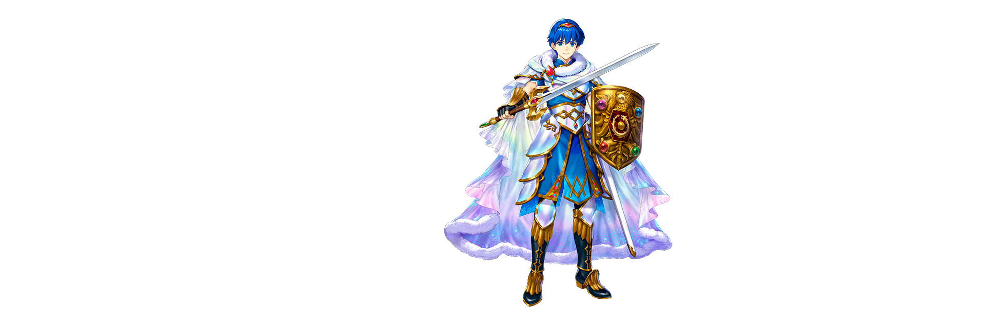 Here's Marth, hero of legend and prince of Altea, and he's wearing some simply divine attire from Vanaheimr, the realm of light! This new look retains the outline of his usual wear, but the armor and cape are made from materials that emit an ethereal shine!