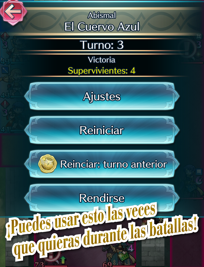 Podrás usar la función de reinicio en determinadas ocasiones para volver a un punto anterior de la batalla.