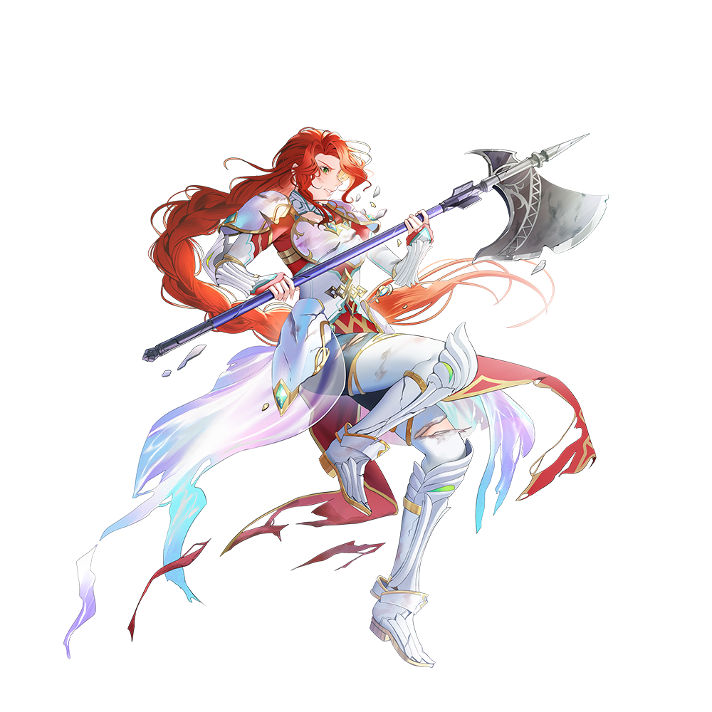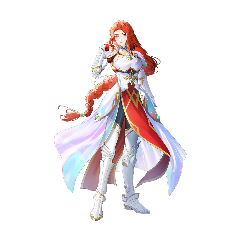 Titania, capitaine des mercenaires de Greil, a revêtu une tenue de Vanaheimr, le royaume de lumière ! Elle porte ici une tenue aux tons rouge et blanc audacieux, et une armure à l'éclat délicat. Les ornements dorés ajoutent à l'ensemble une touche de majesté divine !